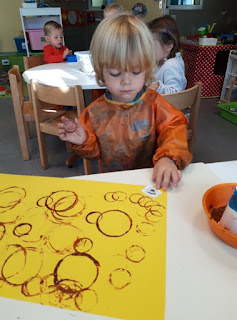 Nadien stempelden we speciaal voor Muis 'kaas met gaatjes' met grote en kleine rollen.